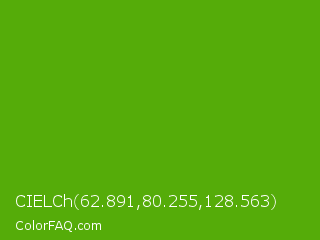 CIELCh 62.891,80.255,128.563 Color is a normal green color and the nearest color is Christi #67a712. Hex code #55ac09 and RGB value is rgb(85,172,9). In RGB color space, this color is composed of 33% red, 67% green, 4% blue, In CMYK color space, this color is composed of 51% cyan, 0% magenta, 95% yellow , 33% black , In HSL color space, this color has a hue angle of 92° , 90% saturation and 35% lightness.