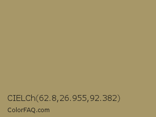 CIELCh 62.8,26.955,92.382 Color is a normal orange color and the nearest color is Sandal #aa8d6f. Hex code #a79768 and RGB value is rgb(167,151,104). In RGB color space, this color is composed of 65% red, 59% green, 41% blue, In CMYK color space, this color is composed of 0% cyan, 10% magenta, 38% yellow , 35% black , In HSL color space, this color has a hue angle of 45° , 26% saturation and 53% lightness.