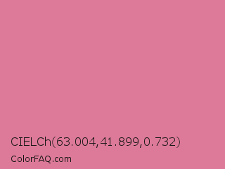 CIELCh 63.004,41.899,0.732 Color is a light rose color and the nearest color is Bright Blush #e47698. Hex code #dd7a99 and RGB value is rgb(221,122,153). In RGB color space, this color is composed of 87% red, 48% green, 60% blue, In CMYK color space, this color is composed of 0% cyan, 45% magenta, 31% yellow , 13% black , In HSL color space, this color has a hue angle of 341° , 59% saturation and 67% lightness.
