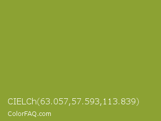 CIELCh 63.057,57.593,113.839 Color is a normal lime color and the nearest color is Sushi #87ab39. Hex code #8ca233 and RGB value is rgb(140,162,51). In RGB color space, this color is composed of 55% red, 64% green, 20% blue, In CMYK color space, this color is composed of 14% cyan, 0% magenta, 69% yellow , 36% black , In HSL color space, this color has a hue angle of 72° , 52% saturation and 42% lightness.