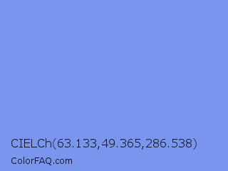 CIELCh 63.133,49.365,286.538 Color is a light blue color and the nearest color is Portage #8b9fee. Hex code #7a95ed and RGB value is rgb(122,149,237). In RGB color space, this color is composed of 48% red, 58% green, 93% blue, In CMYK color space, this color is composed of 49% cyan, 37% magenta, 0% yellow , 7% black , In HSL color space, this color has a hue angle of 226° , 76% saturation and 70% lightness.