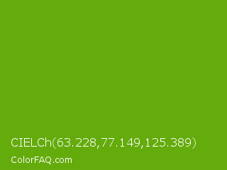 CIELCh 63.228,77.149,125.389 Color is a normal green color and the nearest color is Christi #67a712. Hex code #64ab0c and RGB value is rgb(100,171,12). In RGB color space, this color is composed of 39% red, 67% green, 5% blue, In CMYK color space, this color is composed of 42% cyan, 0% magenta, 93% yellow , 33% black , In HSL color space, this color has a hue angle of 87° , 87% saturation and 36% lightness.