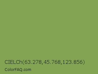 CIELCh 63.278,45.768,123.856 Color is a normal green color and the nearest color is Asparagus Green #7ba05b. Hex code #82a453 and RGB value is rgb(130,164,83). In RGB color space, this color is composed of 51% red, 64% green, 33% blue, In CMYK color space, this color is composed of 21% cyan, 0% magenta, 49% yellow , 36% black , In HSL color space, this color has a hue angle of 85° , 33% saturation and 48% lightness.