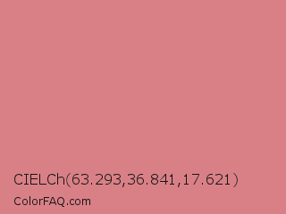 CIELCh 63.293,36.841,17.621 Color is a light red color and the nearest color is New York Pink #d7837f. Hex code #d98087 and RGB value is rgb(217,128,135). In RGB color space, this color is composed of 85% red, 50% green, 53% blue, In CMYK color space, this color is composed of 0% cyan, 41% magenta, 38% yellow , 15% black , In HSL color space, this color has a hue angle of 355° , 54% saturation and 68% lightness.