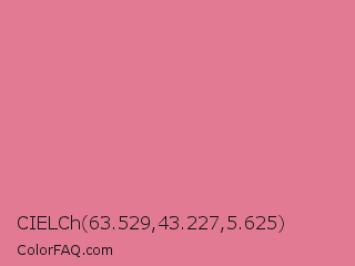 CIELCh 63.529,43.227,5.625 Color is a light red color and the nearest color is Bright Blush #e47698. Hex code #e27a94 and RGB value is rgb(226,122,148). In RGB color space, this color is composed of 89% red, 48% green, 58% blue, In CMYK color space, this color is composed of 0% cyan, 46% magenta, 35% yellow , 11% black , In HSL color space, this color has a hue angle of 345° , 64% saturation and 68% lightness.