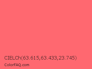 CIELCh 63.615,63.433,23.745 Color is a light red color and the nearest color is Begonia #fa6e79. Hex code #ff6870 and RGB value is rgb(255,104,112). In RGB color space, this color is composed of 100% red, 41% green, 44% blue, In CMYK color space, this color is composed of 0% cyan, 59% magenta, 56% yellow , 0% black , In HSL color space, this color has a hue angle of 357° , 100% saturation and 70% lightness.
