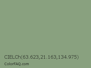 CIELCh 63.623,21.163,134.975 Color is a normal green color and the nearest color is Artichoke #8f9779. Hex code #89a17f and RGB value is rgb(137,161,127). In RGB color space, this color is composed of 54% red, 63% green, 50% blue, In CMYK color space, this color is composed of 15% cyan, 0% magenta, 21% yellow , 37% black , In HSL color space, this color has a hue angle of 102° , 15% saturation and 56% lightness.