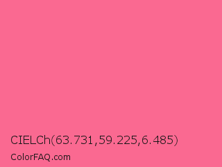 CIELCh 63.731,59.225,6.485 Color is a light rose color and the nearest color is Light Crimson #f56991. Hex code #fa6991 and RGB value is rgb(250,105,145). In RGB color space, this color is composed of 98% red, 41% green, 57% blue, In CMYK color space, this color is composed of 0% cyan, 58% magenta, 42% yellow , 2% black , In HSL color space, this color has a hue angle of 343° , 94% saturation and 70% lightness.