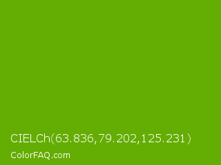 CIELCh 63.836,79.202,125.231 Color is a normal green color and the nearest color is Christi #67a712. Hex code #64ad02 and RGB value is rgb(100,173,2). In RGB color space, this color is composed of 39% red, 68% green, 1% blue, In CMYK color space, this color is composed of 42% cyan, 0% magenta, 99% yellow , 32% black , In HSL color space, this color has a hue angle of 86° , 98% saturation and 34% lightness.