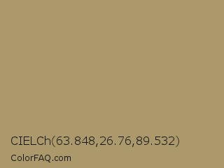 CIELCh 63.848,26.76,89.532 Color is a normal orange color and the nearest color is Teak #b19461. Hex code #ac996b and RGB value is rgb(172,153,107). In RGB color space, this color is composed of 67% red, 60% green, 42% blue, In CMYK color space, this color is composed of 0% cyan, 11% magenta, 38% yellow , 33% black , In HSL color space, this color has a hue angle of 42° , 28% saturation and 55% lightness.