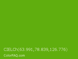 CIELCh 63.991,78.839,126.776 Color is a normal green color and the nearest color is Christi #67a712. Hex code #60ae0e and RGB value is rgb(96,174,14). In RGB color space, this color is composed of 38% red, 68% green, 5% blue, In CMYK color space, this color is composed of 45% cyan, 0% magenta, 92% yellow , 32% black , In HSL color space, this color has a hue angle of 89° , 85% saturation and 37% lightness.