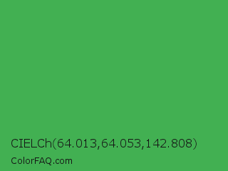 CIELCh 64.013,64.053,142.808 Color is a normal green color and the nearest color is Chateau Green #40a860. Hex code #42b052 and RGB value is rgb(66,176,82). In RGB color space, this color is composed of 26% red, 69% green, 32% blue, In CMYK color space, this color is composed of 63% cyan, 0% magenta, 53% yellow , 31% black , In HSL color space, this color has a hue angle of 129° , 45% saturation and 47% lightness.