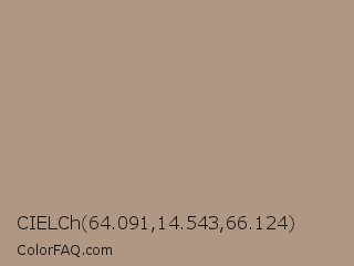CIELCh 64.091,14.543,66.124 Color is a normal orange color and the nearest color is Grullo #a99a86. Hex code #af9784 and RGB value is rgb(175,151,132). In RGB color space, this color is composed of 69% red, 59% green, 52% blue, In CMYK color space, this color is composed of 0% cyan, 14% magenta, 25% yellow , 31% black , In HSL color space, this color has a hue angle of 27° , 21% saturation and 60% lightness.
