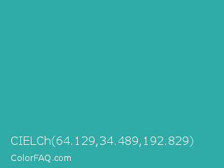 CIELCh 64.129,34.489,192.829 Color is a normal cyan color and the nearest color is Keppel #3ab09e. Hex code #30aca8 and RGB value is rgb(48,172,168). In RGB color space, this color is composed of 19% red, 67% green, 66% blue, In CMYK color space, this color is composed of 72% cyan, 0% magenta, 2% yellow , 33% black , In HSL color space, this color has a hue angle of 178° , 56% saturation and 43% lightness.