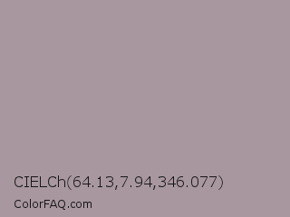 CIELCh 64.13,7.94,346.077 Color is a light rose color and the nearest color is Dusty Gray #a8989b. Hex code #a8979f and RGB value is rgb(168,151,159). In RGB color space, this color is composed of 66% red, 59% green, 62% blue, In CMYK color space, this color is composed of 0% cyan, 10% magenta, 5% yellow , 34% black , In HSL color space, this color has a hue angle of 332° , 9% saturation and 63% lightness.