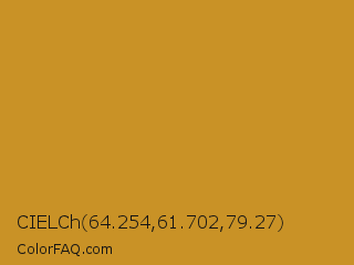 CIELCh 64.254,61.702,79.27 Color is a normal orange color and the nearest color is Nugget #c59922. Hex code #c99226 and RGB value is rgb(201,146,38). In RGB color space, this color is composed of 79% red, 57% green, 15% blue, In CMYK color space, this color is composed of 0% cyan, 27% magenta, 81% yellow , 21% black , In HSL color space, this color has a hue angle of 40° , 68% saturation and 47% lightness.