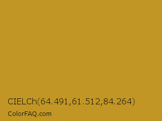 CIELCh 64.491,61.512,84.264 Color is a normal orange color and the nearest color is Nugget #c59922. Hex code #c29624 and RGB value is rgb(194,150,36). In RGB color space, this color is composed of 76% red, 59% green, 14% blue, In CMYK color space, this color is composed of 0% cyan, 23% magenta, 81% yellow , 24% black , In HSL color space, this color has a hue angle of 43° , 69% saturation and 45% lightness.