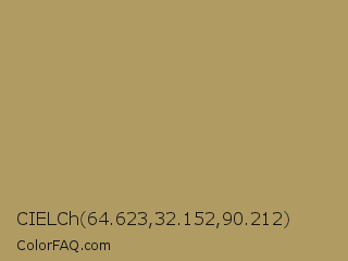 CIELCh 64.623,32.152,90.212 Color is a normal orange color and the nearest color is Teak #b19461. Hex code #b09b63 and RGB value is rgb(176,155,99). In RGB color space, this color is composed of 69% red, 61% green, 39% blue, In CMYK color space, this color is composed of 0% cyan, 12% magenta, 44% yellow , 31% black , In HSL color space, this color has a hue angle of 44° , 33% saturation and 54% lightness.