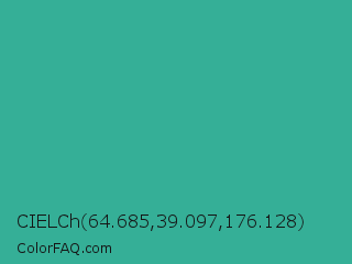CIELCh 64.685,39.097,176.128 Color is a normal cyan color and the nearest color is Keppel #3ab09e. Hex code #35af97 and RGB value is rgb(53,175,151). In RGB color space, this color is composed of 21% red, 69% green, 59% blue, In CMYK color space, this color is composed of 70% cyan, 0% magenta, 14% yellow , 31% black , In HSL color space, this color has a hue angle of 168° , 54% saturation and 45% lightness.
