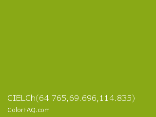 CIELCh 64.765,69.696,114.835 Color is a normal lime color and the nearest color is Citron #9fa91f. Hex code #89a916 and RGB value is rgb(137,169,22). In RGB color space, this color is composed of 54% red, 66% green, 9% blue, In CMYK color space, this color is composed of 19% cyan, 0% magenta, 87% yellow , 34% black , In HSL color space, this color has a hue angle of 73° , 77% saturation and 37% lightness.