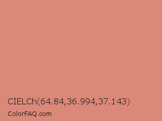CIELCh 64.84,36.994,37.143 Color is a light red color and the nearest color is New York Pink #d7837f. Hex code #da8877 and RGB value is rgb(218,136,119). In RGB color space, this color is composed of 85% red, 53% green, 47% blue, In CMYK color space, this color is composed of 0% cyan, 38% magenta, 45% yellow , 15% black , In HSL color space, this color has a hue angle of 10° , 57% saturation and 66% lightness.