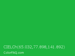 CIELCh 65.032,77.898,141.892 Color is a normal green color and the nearest color is Wageningen Green #34b233. Hex code #1db640 and RGB value is rgb(29,182,64). In RGB color space, this color is composed of 11% red, 71% green, 25% blue, In CMYK color space, this color is composed of 84% cyan, 0% magenta, 65% yellow , 29% black , In HSL color space, this color has a hue angle of 134° , 73% saturation and 41% lightness.