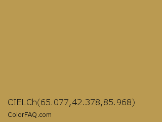 CIELCh 65.077,42.378,85.968 Color is a normal orange color and the nearest color is Aztec Gold #c39953. Hex code #ba9a51 and RGB value is rgb(186,154,81). In RGB color space, this color is composed of 73% red, 60% green, 32% blue, In CMYK color space, this color is composed of 0% cyan, 17% magenta, 56% yellow , 27% black , In HSL color space, this color has a hue angle of 42° , 43% saturation and 52% lightness.