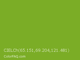 CIELCh 65.151,69.204,121.481 Color is a normal green color and the nearest color is Lima #76bd17. Hex code #7bad26 and RGB value is rgb(123,173,38). In RGB color space, this color is composed of 48% red, 68% green, 15% blue, In CMYK color space, this color is composed of 29% cyan, 0% magenta, 78% yellow , 32% black , In HSL color space, this color has a hue angle of 82° , 64% saturation and 41% lightness.