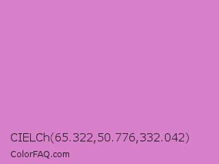 CIELCh 65.322,50.776,332.042 Color is a light magenta color and the nearest color is French Mauve #d473d4. Hex code #d980ca and RGB value is rgb(217,128,202). In RGB color space, this color is composed of 85% red, 50% green, 79% blue, In CMYK color space, this color is composed of 0% cyan, 41% magenta, 7% yellow , 15% black , In HSL color space, this color has a hue angle of 310° , 54% saturation and 68% lightness.