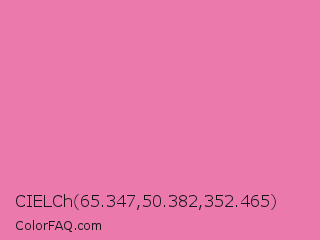 CIELCh 65.347,50.382,352.465 Color is a light rose color and the nearest color is Carissma #ea88a8. Hex code #ec79ac and RGB value is rgb(236,121,172). In RGB color space, this color is composed of 93% red, 47% green, 67% blue, In CMYK color space, this color is composed of 0% cyan, 49% magenta, 27% yellow , 7% black , In HSL color space, this color has a hue angle of 333° , 75% saturation and 70% lightness.