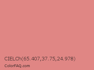 CIELCh 65.407,37.75,24.978 Color is a light red color and the nearest color is New York Pink #d7837f. Hex code #e08684 and RGB value is rgb(224,134,132). In RGB color space, this color is composed of 88% red, 53% green, 52% blue, In CMYK color space, this color is composed of 0% cyan, 40% magenta, 41% yellow , 12% black , In HSL color space, this color has a hue angle of 1° , 60% saturation and 70% lightness.