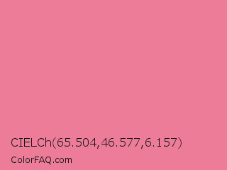CIELCh 65.504,46.577,6.157 Color is a light red color and the nearest color is Bright Blush #e47698. Hex code #ed7c98 and RGB value is rgb(237,124,152). In RGB color space, this color is composed of 93% red, 49% green, 60% blue, In CMYK color space, this color is composed of 0% cyan, 48% magenta, 36% yellow , 7% black , In HSL color space, this color has a hue angle of 345° , 76% saturation and 71% lightness.