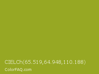 CIELCh 65.519,64.948,110.188 Color is a normal yellow color and the nearest color is Citron #9fa91f. Hex code #97a823 and RGB value is rgb(151,168,35). In RGB color space, this color is composed of 59% red, 66% green, 14% blue, In CMYK color space, this color is composed of 10% cyan, 0% magenta, 79% yellow , 34% black , In HSL color space, this color has a hue angle of 68° , 66% saturation and 40% lightness.