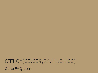 CIELCh 65.659,24.11,81.66 Color is a normal orange color and the nearest color is Mongoose #b5a27f. Hex code #b59c75 and RGB value is rgb(181,156,117). In RGB color space, this color is composed of 71% red, 61% green, 46% blue, In CMYK color space, this color is composed of 0% cyan, 14% magenta, 35% yellow , 29% black , In HSL color space, this color has a hue angle of 37° , 30% saturation and 58% lightness.