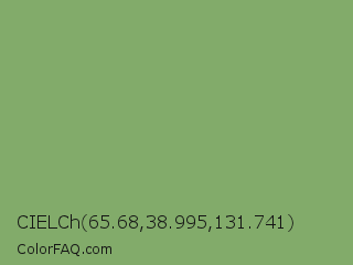 CIELCh 65.68,38.995,131.741 Color is a normal green color and the nearest color is Asparagus #87a96b. Hex code #82ab6a and RGB value is rgb(130,171,106). In RGB color space, this color is composed of 51% red, 67% green, 42% blue, In CMYK color space, this color is composed of 24% cyan, 0% magenta, 38% yellow , 33% black , In HSL color space, this color has a hue angle of 98° , 28% saturation and 54% lightness.