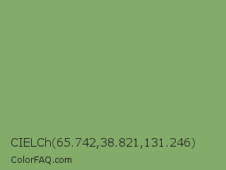 CIELCh 65.742,38.821,131.246 Color is a normal green color and the nearest color is Asparagus #87a96b. Hex code #83ab6a and RGB value is rgb(131,171,106). In RGB color space, this color is composed of 51% red, 67% green, 42% blue, In CMYK color space, this color is composed of 23% cyan, 0% magenta, 38% yellow , 33% black , In HSL color space, this color has a hue angle of 97° , 28% saturation and 54% lightness.