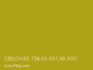 CIELCh 65.758,65.937,98.005 Color is a normal yellow color and the nearest color is Lucky #af9f1c. Hex code #afa216 and RGB value is rgb(175,162,22). In RGB color space, this color is composed of 69% red, 64% green, 9% blue, In CMYK color space, this color is composed of 0% cyan, 7% magenta, 87% yellow , 31% black , In HSL color space, this color has a hue angle of 55° , 78% saturation and 39% lightness.