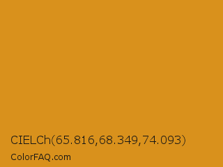 CIELCh 65.816,68.349,74.093 Color is a normal orange color and the nearest color is Geebung #d18f1b. Hex code #d9911c and RGB value is rgb(217,145,28). In RGB color space, this color is composed of 85% red, 57% green, 11% blue, In CMYK color space, this color is composed of 0% cyan, 33% magenta, 87% yellow , 15% black , In HSL color space, this color has a hue angle of 37° , 77% saturation and 48% lightness.