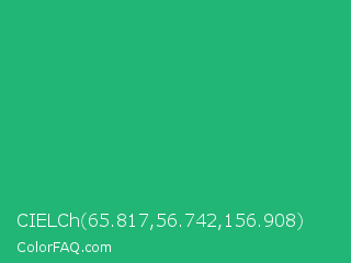 CIELCh 65.817,56.742,156.908 Color is a normal green color and the nearest color is Green Crayola #1cac78. Hex code #21b676 and RGB value is rgb(33,182,118). In RGB color space, this color is composed of 13% red, 71% green, 46% blue, In CMYK color space, this color is composed of 82% cyan, 0% magenta, 35% yellow , 29% black , In HSL color space, this color has a hue angle of 154° , 69% saturation and 42% lightness.