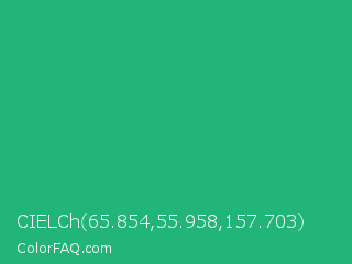 CIELCh 65.854,55.958,157.703 Color is a normal green color and the nearest color is Green Crayola #1cac78. Hex code #21b678 and RGB value is rgb(33,182,120). In RGB color space, this color is composed of 13% red, 71% green, 47% blue, In CMYK color space, this color is composed of 82% cyan, 0% magenta, 34% yellow , 29% black , In HSL color space, this color has a hue angle of 155° , 69% saturation and 42% lightness.