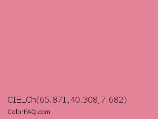 CIELCh 65.871,40.308,7.682 Color is a light red color and the nearest color is Ruddy Pink #e18e96. Hex code #e58398 and RGB value is rgb(229,131,152). In RGB color space, this color is composed of 90% red, 51% green, 60% blue, In CMYK color space, this color is composed of 0% cyan, 43% magenta, 34% yellow , 10% black , In HSL color space, this color has a hue angle of 347° , 65% saturation and 71% lightness.