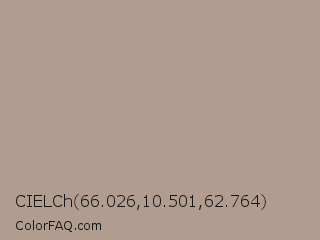 CIELCh 66.026,10.501,62.764 Color is a light orange color and the nearest color is Del Rio #b09a95. Hex code #b09d90 and RGB value is rgb(176,157,144). In RGB color space, this color is composed of 69% red, 62% green, 56% blue, In CMYK color space, this color is composed of 0% cyan, 11% magenta, 18% yellow , 31% black , In HSL color space, this color has a hue angle of 24° , 17% saturation and 63% lightness.