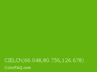 CIELCh 66.048,80.756,126.678 Color is a normal green color and the nearest color is Christi #67a712. Hex code #64b40f and RGB value is rgb(100,180,15). In RGB color space, this color is composed of 39% red, 71% green, 6% blue, In CMYK color space, this color is composed of 44% cyan, 0% magenta, 92% yellow , 29% black , In HSL color space, this color has a hue angle of 89° , 85% saturation and 38% lightness.