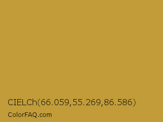 CIELCh 66.059,55.269,86.586 Color is a normal orange color and the nearest color is Satin Sheen Gold #cba135. Hex code #c19c38 and RGB value is rgb(193,156,56). In RGB color space, this color is composed of 76% red, 61% green, 22% blue, In CMYK color space, this color is composed of 0% cyan, 19% magenta, 71% yellow , 24% black , In HSL color space, this color has a hue angle of 44° , 55% saturation and 49% lightness.