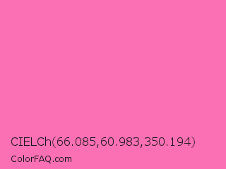 CIELCh 66.085,60.983,350.194 Color is a light rose color and the nearest color is Hot Pink #ff69b4. Hex code #fb70b5 and RGB value is rgb(251,112,181). In RGB color space, this color is composed of 98% red, 44% green, 71% blue, In CMYK color space, this color is composed of 0% cyan, 55% magenta, 28% yellow , 2% black , In HSL color space, this color has a hue angle of 330° , 95% saturation and 71% lightness.