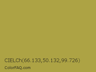 CIELCh 66.133,50.132,99.726 Color is a normal yellow color and the nearest color is Brass #b5a642. Hex code #ada344 and RGB value is rgb(173,163,68). In RGB color space, this color is composed of 68% red, 64% green, 27% blue, In CMYK color space, this color is composed of 0% cyan, 6% magenta, 61% yellow , 32% black , In HSL color space, this color has a hue angle of 54° , 44% saturation and 47% lightness.