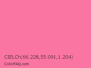 CIELCh 66.228,55.091,1.204 Color is a light rose color and the nearest color is Cyclamen #f56fa1. Hex code #fa75a1 and RGB value is rgb(250,117,161). In RGB color space, this color is composed of 98% red, 46% green, 63% blue, In CMYK color space, this color is composed of 0% cyan, 53% magenta, 36% yellow , 2% black , In HSL color space, this color has a hue angle of 340° , 93% saturation and 72% lightness.