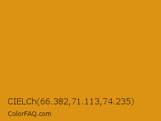 CIELCh 66.382,71.113,74.235 Color is a normal orange color and the nearest color is Dixie #e29418. Hex code #dc9213 and RGB value is rgb(220,146,19). In RGB color space, this color is composed of 86% red, 57% green, 7% blue, In CMYK color space, this color is composed of 0% cyan, 34% magenta, 91% yellow , 14% black , In HSL color space, this color has a hue angle of 38° , 84% saturation and 47% lightness.