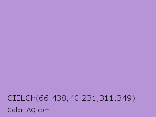 CIELCh 66.438,40.231,311.349 Color is a light purple color and the nearest color is Light Pastel Purple #b19cd9. Hex code #b793d8 and RGB value is rgb(183,147,216). In RGB color space, this color is composed of 72% red, 58% green, 85% blue, In CMYK color space, this color is composed of 15% cyan, 32% magenta, 0% yellow , 15% black , In HSL color space, this color has a hue angle of 271° , 47% saturation and 71% lightness.