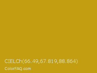 CIELCh 66.49,67.819,88.864 Color is a normal yellow color and the nearest color is Buddha Gold #c1a004. Hex code #c29e10 and RGB value is rgb(194,158,16). In RGB color space, this color is composed of 76% red, 62% green, 6% blue, In CMYK color space, this color is composed of 0% cyan, 19% magenta, 92% yellow , 24% black , In HSL color space, this color has a hue angle of 48° , 85% saturation and 41% lightness.